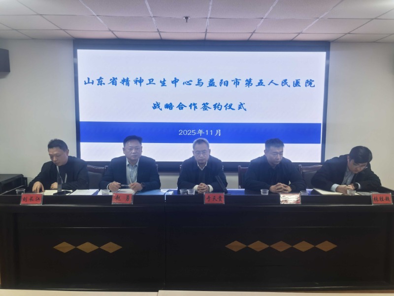 11月4日,益陽市第五人民醫院與山東省精神衛生中心戰略合作簽約儀式在怡養樓會議室舉行,雙方攜手開啟全面戰略合作新篇章。