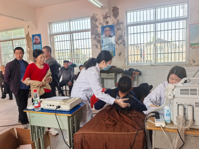 來自內科與老年科的數名專家聯合坐診,移動x光射線診斷儀、心電圖、B超、血糖儀等專用醫療設備進村入戶,為村民提供健康體檢、康復指導、用藥指導,以及常見病、易發多發病防治等科普知識宣傳,并免費發放村民日常所需藥品,讓村民在家門口享受優質醫療服務。活動現場還開展健康科普、政策宣講等服務。