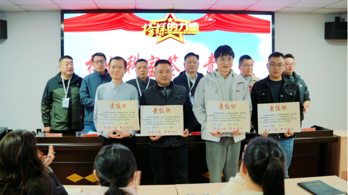 會上,男二病區(qū)、心身醫(yī)學科、醫(yī)技科、辦公室(四)4個科室主任分別代表樣板科室做表態(tài)發(fā)言并簽署責任狀。隨后,全體與會人員進行莊嚴宣誓,緊握拳頭,堅定目光,鏗鏘誓言響徹云霄。